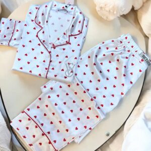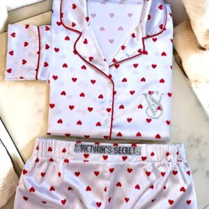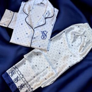 Saten Kumaşlı Beli Taş Detaylı VS logolu Pijama Takımı,